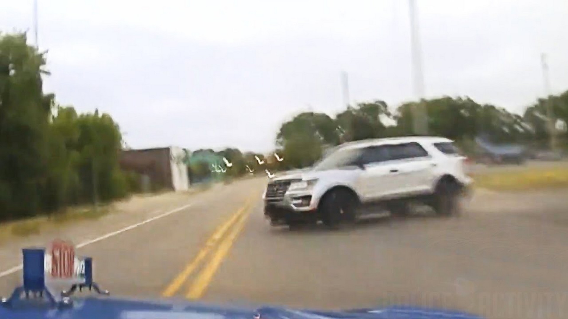 Video shows the moments leading up to the accident. The suspects were in a now-confirmed stolen Ford Explorer and they drove into the intersection at a high rate of speed. The second police car joining the chase only sees them moments before the impact as they emerge from behind a building.