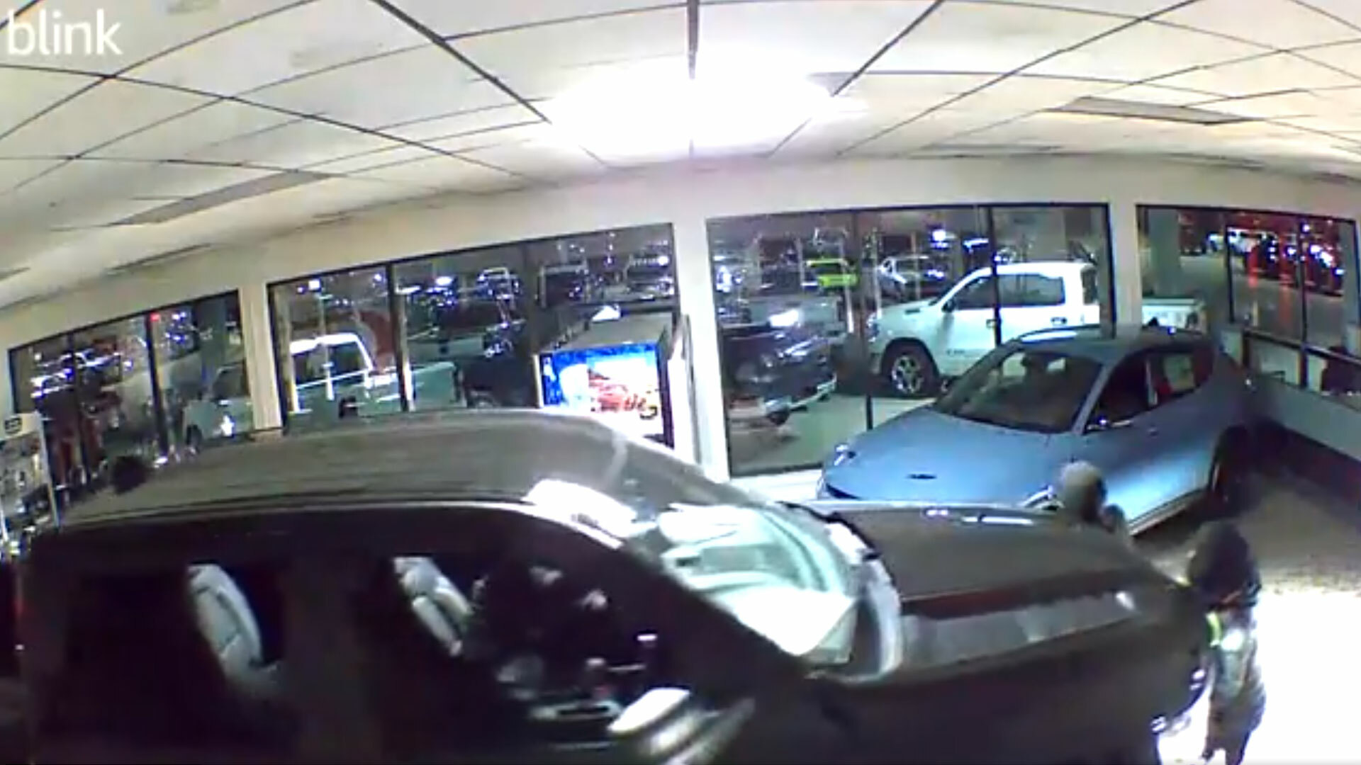 They somehow managed to get inside the dealership, where they were filmed pushing a Ram pickup out of the way. With the truck moved, the thieves were able to steal a silver and “baby blue” Charger Scat Pack right off the showroom floor.